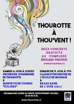 - le 4 juin 2016 : au Complexe Polyvalent de THOUROTTE (60), Concert de l’Orchestre d’Harmonie de Thourotte avec le Quintette de Cuivres "Eolides" organisé dans le cadre du Festival "Thourotte à Thou'Vent" de l'Ecole de Musique Municipale.