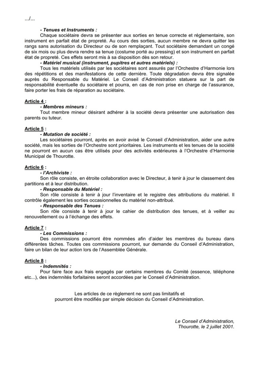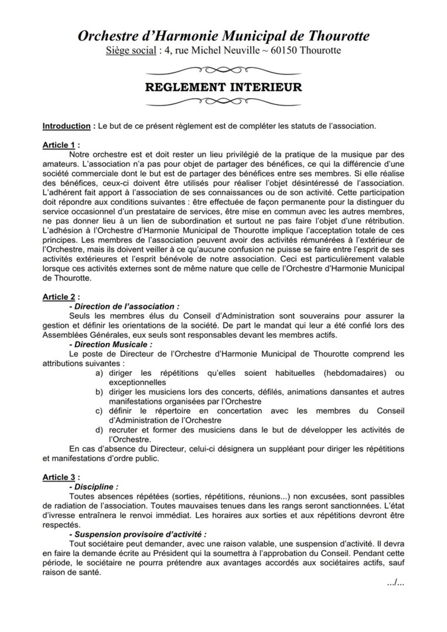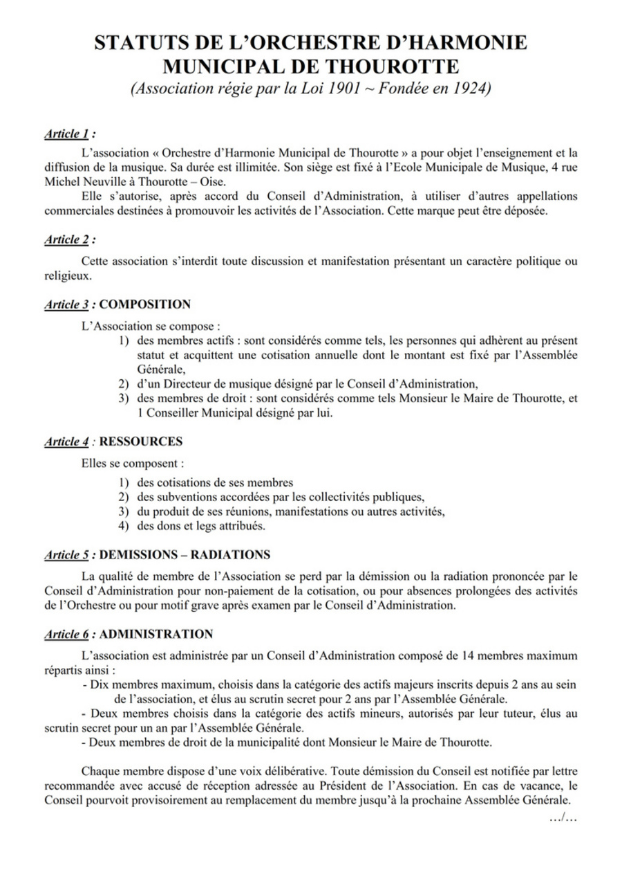 Vous trouverez ci-dessous les Statuts de l'Orchestre d'Harmonie de Thourotte :